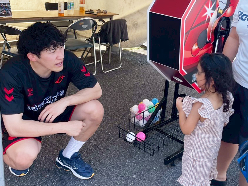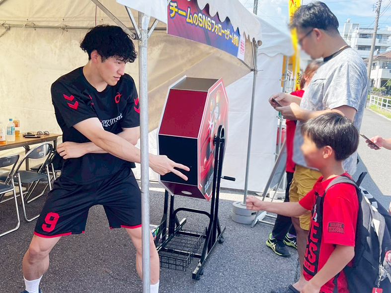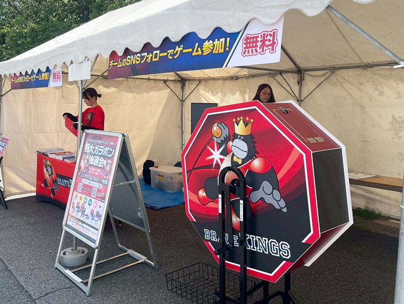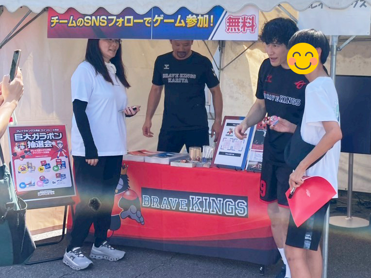 14:00~15:00の時間限定で、ブレイヴキングス刈谷の杉岡選手と門山TDがブースに遊びに来てくれました👏ファンにとっては特別なひととき!1時間前から選手の到着を待ってくれた方も。ブースではガラポンゲームを実施しました。