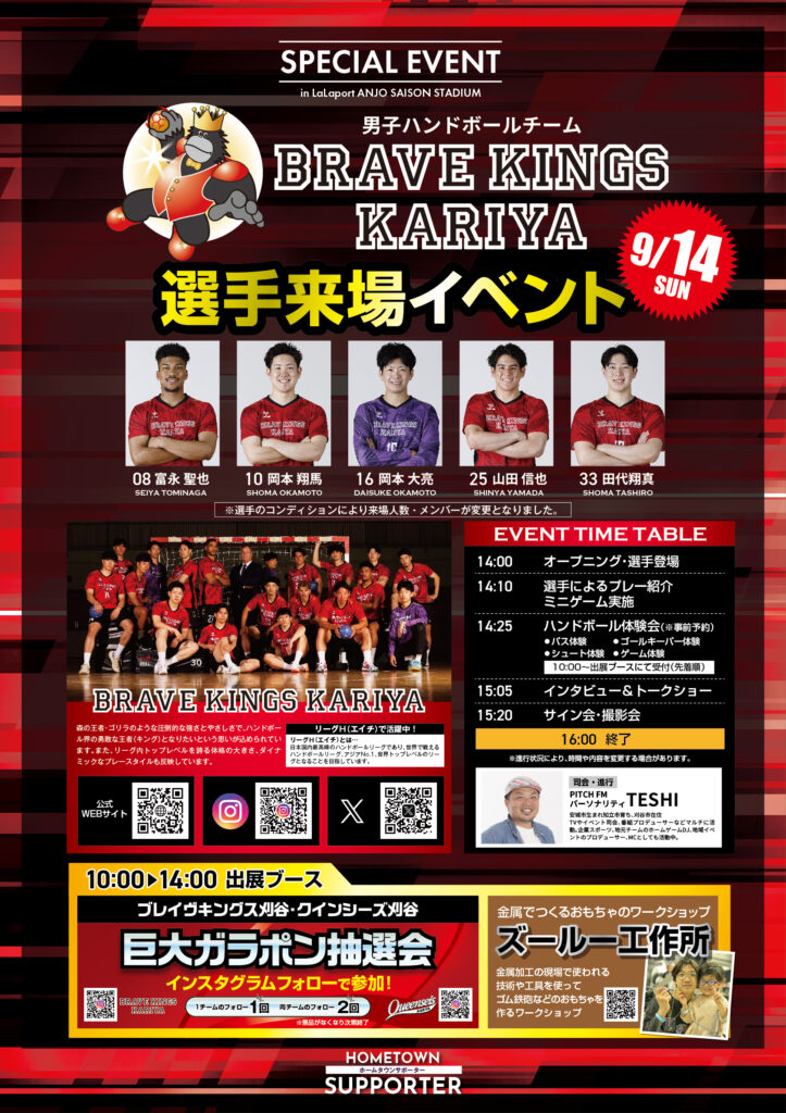 男子ハンドボールチーム「ブレイヴキングス刈谷」のイベントを開催します。