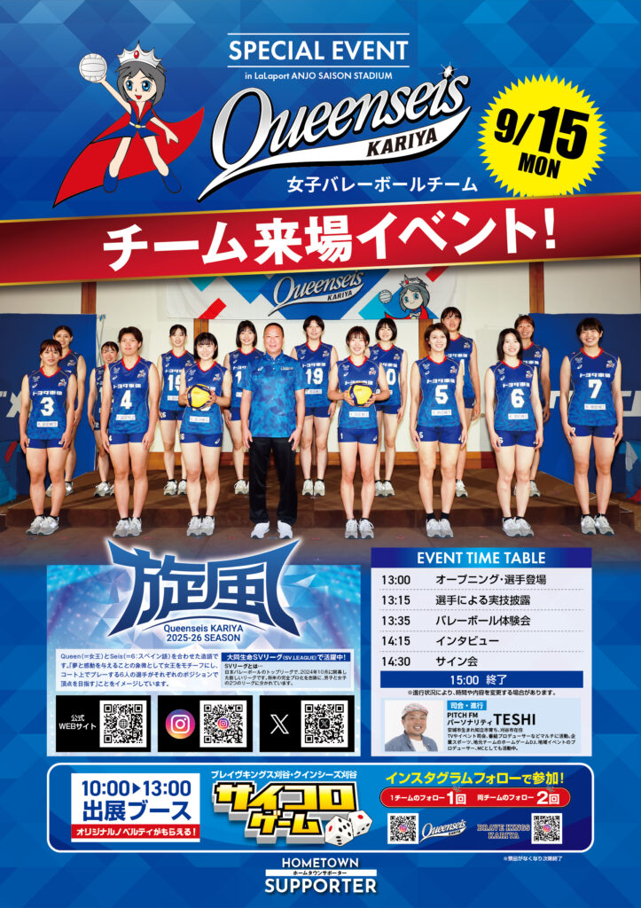 女子バレーボールチーム「クインシーズ刈谷」のイベントを開催します。